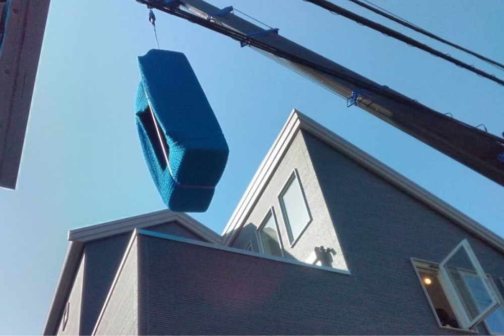 クレーンを使い、密集した住宅や階段から上がらない冷蔵庫・洗濯機・大きな家具などの搬入と搬出を行います。