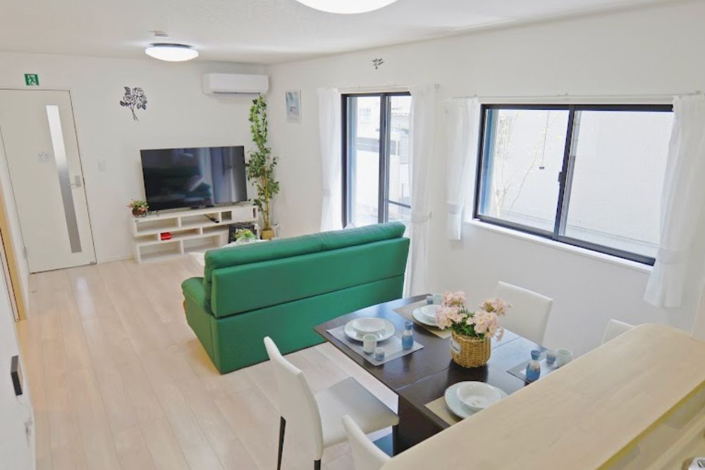 キッチンや洗濯機も備え、観光から長期滞在まで幅広くご利用いただけるゲストハウスです。